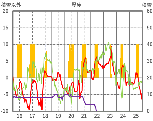 | 日 | 時 | 気温 | 降水 | 風向/風速 | 日照 | 積雪 | 降雪 |