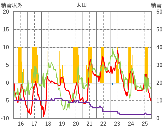 | 日 | 時 | 気温 | 降水 | 風向/風速 | 日照 | 積雪 | 降雪 |