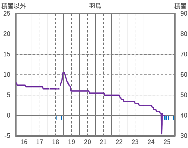 | 日 | 時 | 気温 | 降水 | 風向/風速 | 日照 | 積雪 | 降雪 |