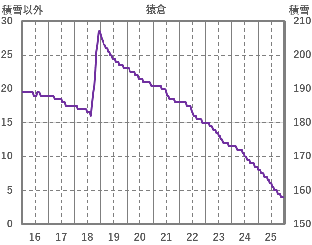 | 日 | 時 | 気温 | 降水 | 風向/風速 | 日照 | 積雪 | 降雪 |