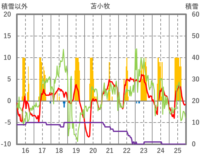 | 日 | 時 | 気温 | 降水 | 風向/風速 | 日照 | 積雪 | 降雪 |