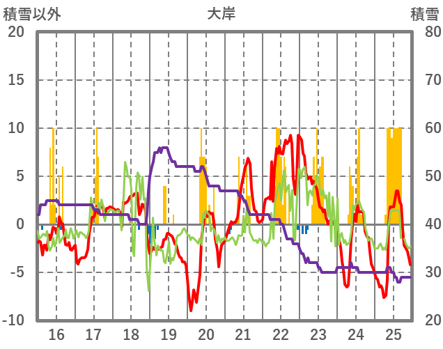 | 日 | 時 | 気温 | 降水 | 風向/風速 | 日照 | 積雪 | 降雪 |