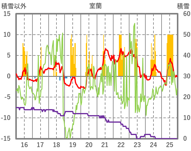 | 日 | 時 | 気温 | 降水 | 風向/風速 | 日照 | 積雪 | 降雪 |