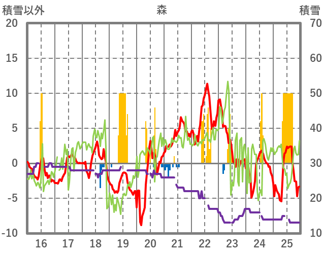 | 日 | 時 | 気温 | 降水 | 風向/風速 | 日照 | 積雪 | 降雪 |
