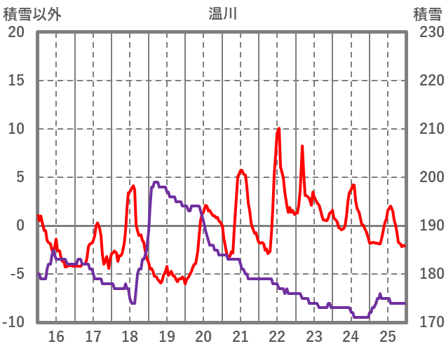 | 日 | 時 | 気温 | 降水 | 風向/風速 | 日照 | 積雪 | 降雪 |