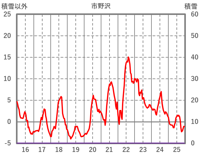 | 日 | 時 | 気温 | 降水 | 風向/風速 | 日照 | 積雪 | 降雪 |