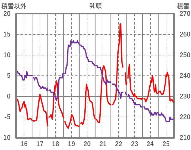 | 日 | 時 | 気温 | 降水 | 風向/風速 | 日照 | 積雪 | 降雪 |