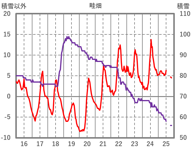 | 日 | 時 | 気温 | 降水 | 風向/風速 | 日照 | 積雪 | 降雪 |