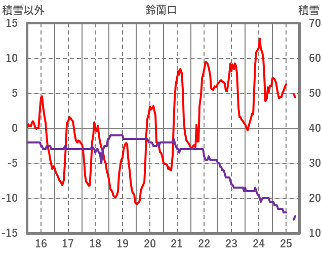 | 日 | 時 | 気温 | 降水 | 風向/風速 | 日照 | 積雪 | 降雪 |