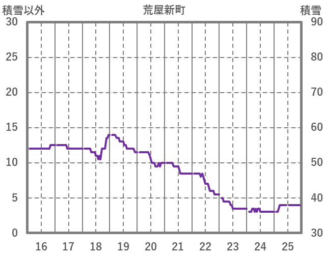 | 日 | 時 | 気温 | 降水 | 風向/風速 | 日照 | 積雪 | 降雪 |