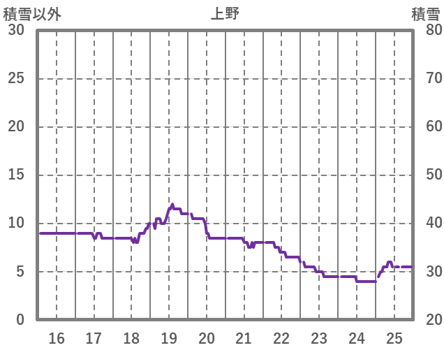 | 日 | 時 | 気温 | 降水 | 風向/風速 | 日照 | 積雪 | 降雪 |