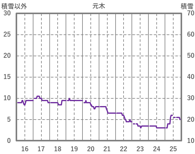 | 日 | 時 | 気温 | 降水 | 風向/風速 | 日照 | 積雪 | 降雪 |