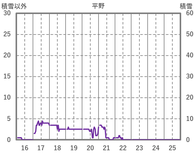 | 日 | 時 | 気温 | 降水 | 風向/風速 | 日照 | 積雪 | 降雪 |