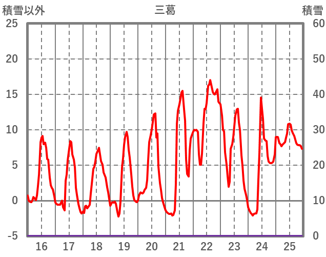 | 日 | 時 | 気温 | 降水 | 風向/風速 | 日照 | 積雪 | 降雪 |
