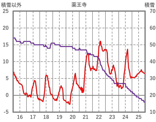 | 日 | 時 | 気温 | 降水 | 風向/風速 | 日照 | 積雪 | 降雪 |