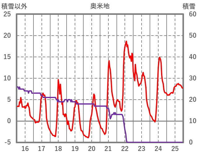 | 日 | 時 | 気温 | 降水 | 風向/風速 | 日照 | 積雪 | 降雪 |