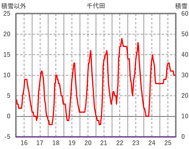 | 日 | 時 | 気温 | 降水 | 風向/風速 | 日照 | 積雪 | 降雪 |