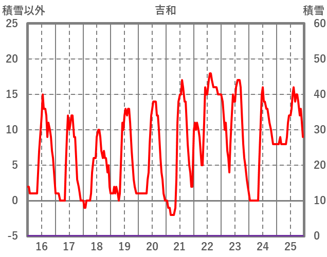 | 日 | 時 | 気温 | 降水 | 風向/風速 | 日照 | 積雪 | 降雪 |
