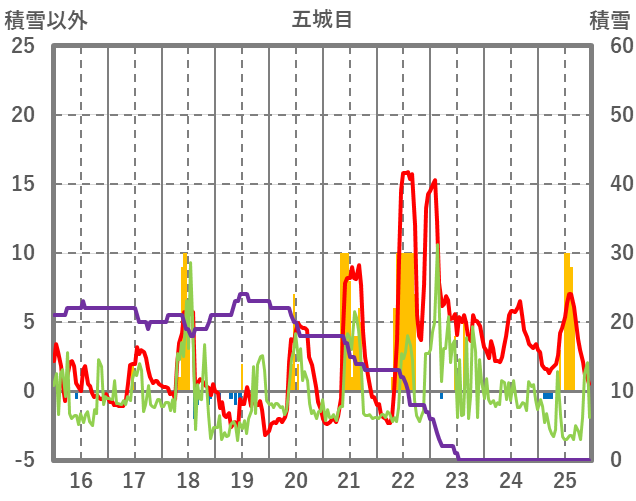 | 日 | 時 | 気温 | 降水 | 風向/風速 | 日照 | 積雪 | 降雪 |