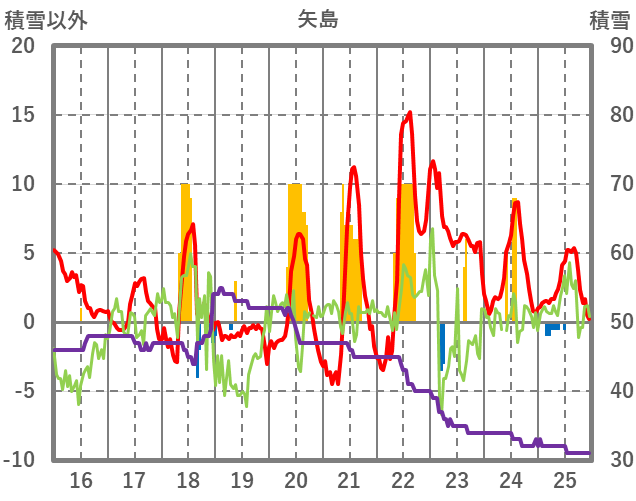 | 日 | 時 | 気温 | 降水 | 風向/風速 | 日照 | 積雪 | 降雪 |