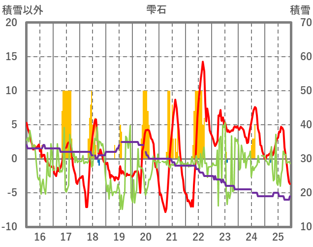 | 日 | 時 | 気温 | 降水 | 風向/風速 | 日照 | 積雪 | 降雪 |