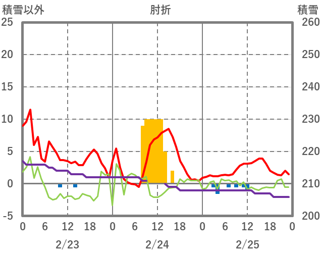 | 日 | 時 | 気温 | 降水 | 風向/風速 | 日照 | 積雪 | 降雪 |