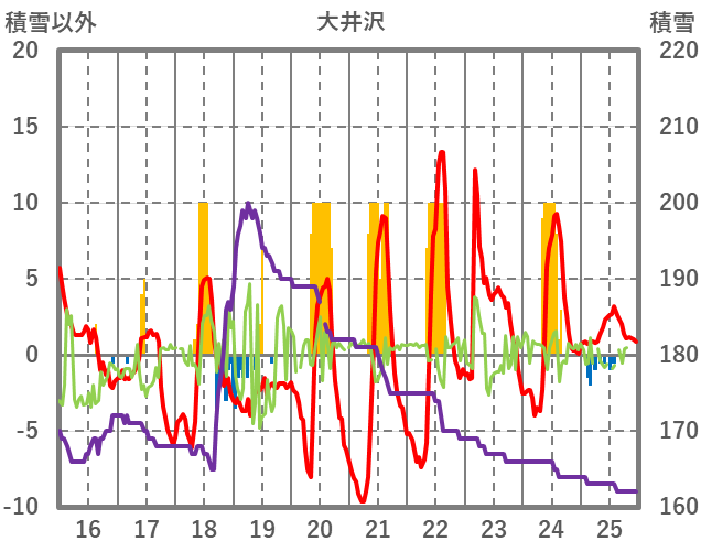 | 日 | 時 | 気温 | 降水 | 風向/風速 | 日照 | 積雪 | 降雪 |