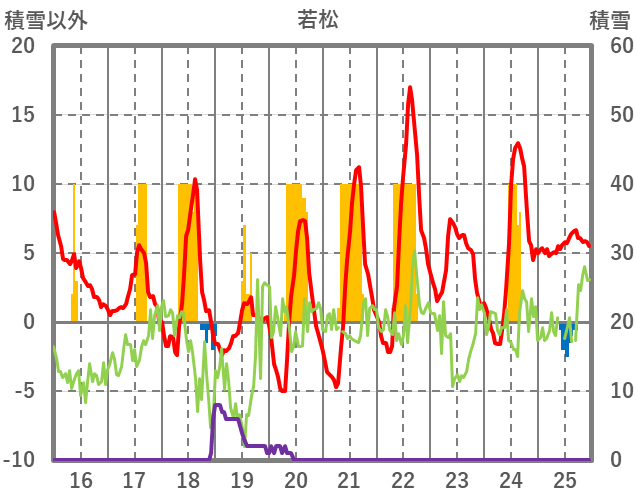 | 日 | 時 | 気温 | 降水 | 風向/風速 | 日照 | 積雪 | 降雪 |