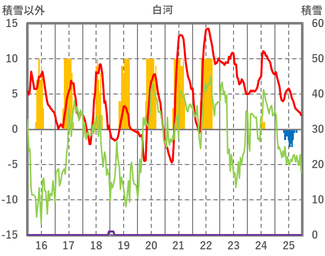 | 日 | 時 | 気温 | 降水 | 風向/風速 | 日照 | 積雪 | 降雪 |