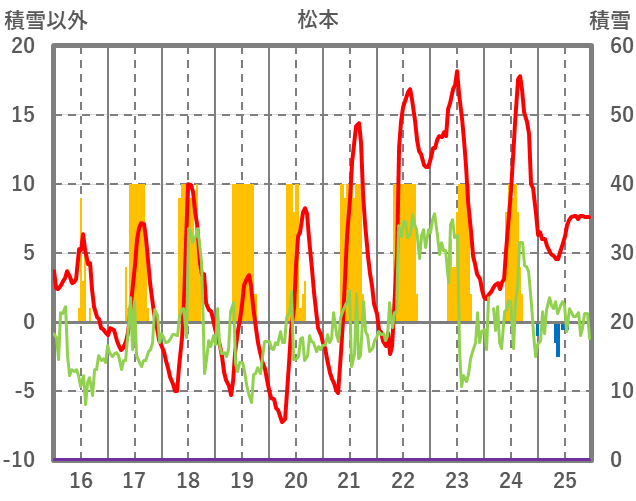 | 日 | 時 | 気温 | 降水 | 風向/風速 | 日照 | 積雪 | 降雪 |