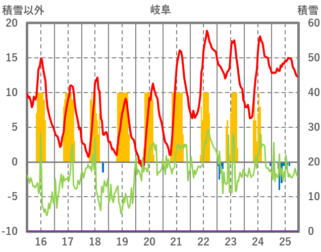 | 日 | 時 | 気温 | 降水 | 風向/風速 | 日照 | 積雪 | 降雪 |