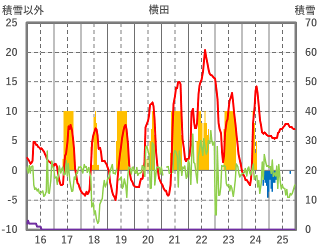 | 日 | 時 | 気温 | 降水 | 風向/風速 | 日照 | 積雪 | 降雪 |