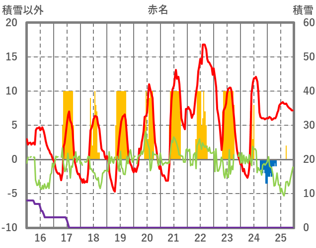 | 日 | 時 | 気温 | 降水 | 風向/風速 | 日照 | 積雪 | 降雪 |