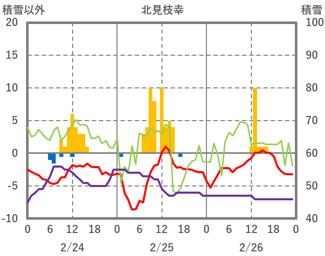 | 日 | 時 | 気温 | 降水 | 風向/風速 | 日照 | 積雪 | 降雪 |