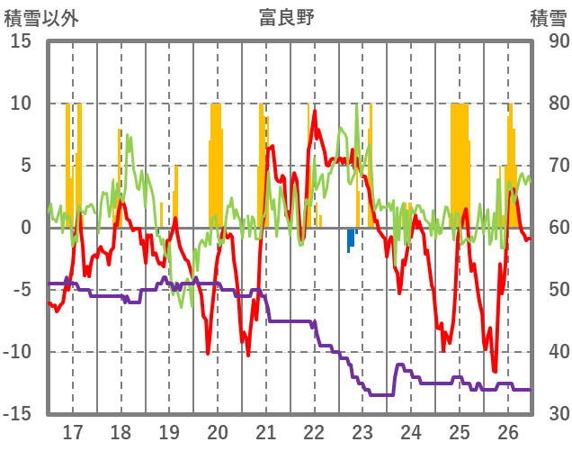 | 日 | 時 | 気温 | 降水 | 風向/風速 | 日照 | 積雪 | 降雪 |