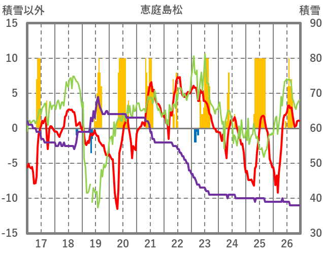 | 日 | 時 | 気温 | 降水 | 風向/風速 | 日照 | 積雪 | 降雪 |