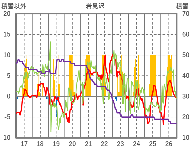 | 日 | 時 | 気温 | 降水 | 風向/風速 | 日照 | 積雪 | 降雪 |
