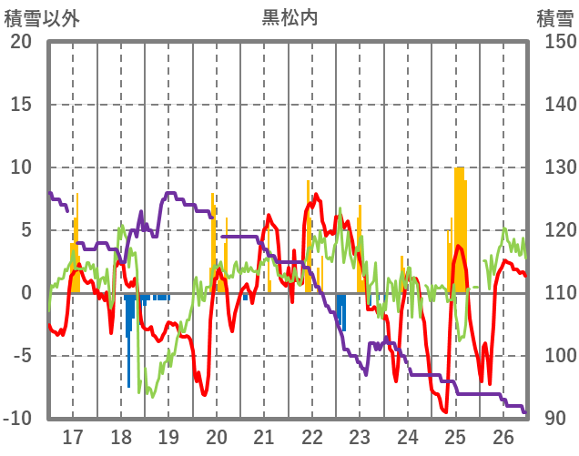 | 日 | 時 | 気温 | 降水 | 風向/風速 | 日照 | 積雪 | 降雪 |