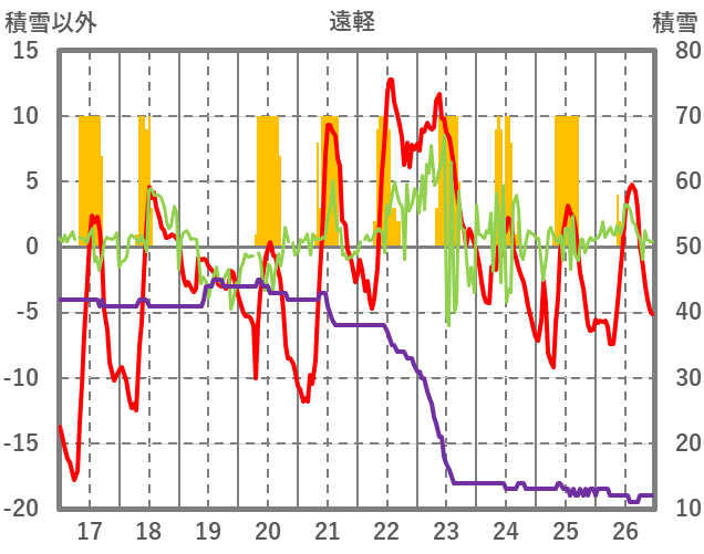 | 日 | 時 | 気温 | 降水 | 風向/風速 | 日照 | 積雪 | 降雪 |