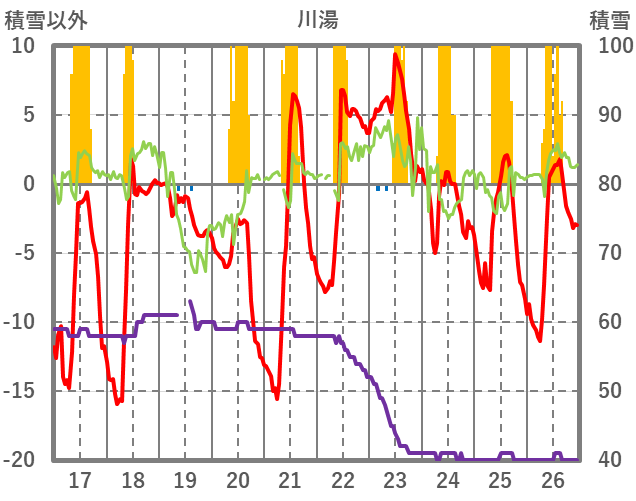 | 日 | 時 | 気温 | 降水 | 風向/風速 | 日照 | 積雪 | 降雪 |
