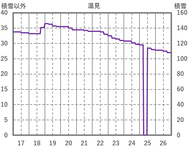 | 日 | 時 | 気温 | 降水 | 風向/風速 | 日照 | 積雪 | 降雪 |