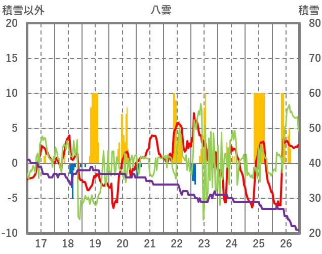 | 日 | 時 | 気温 | 降水 | 風向/風速 | 日照 | 積雪 | 降雪 |