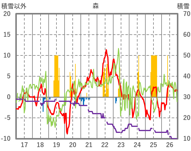 | 日 | 時 | 気温 | 降水 | 風向/風速 | 日照 | 積雪 | 降雪 |