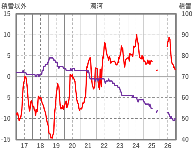 | 日 | 時 | 気温 | 降水 | 風向/風速 | 日照 | 積雪 | 降雪 |