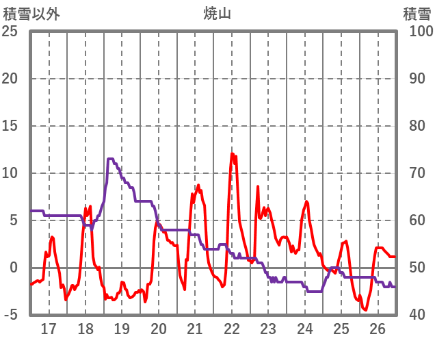 | 日 | 時 | 気温 | 降水 | 風向/風速 | 日照 | 積雪 | 降雪 |