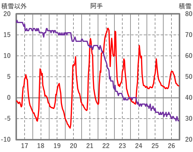 | 日 | 時 | 気温 | 降水 | 風向/風速 | 日照 | 積雪 | 降雪 |