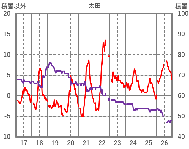 | 日 | 時 | 気温 | 降水 | 風向/風速 | 日照 | 積雪 | 降雪 |