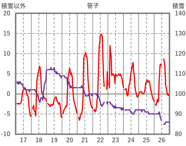 | 日 | 時 | 気温 | 降水 | 風向/風速 | 日照 | 積雪 | 降雪 |