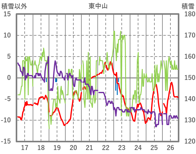 | 日 | 時 | 気温 | 降水 | 風向/風速 | 日照 | 積雪 | 降雪 |