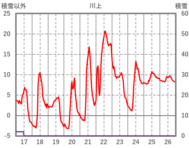 | 日 | 時 | 気温 | 降水 | 風向/風速 | 日照 | 積雪 | 降雪 |